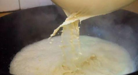 5. 点浆:将沸腾的豆浆倒入事先准备好的模具中,加入适量的凝固剂(如石膏、卤水等),搅拌均匀。